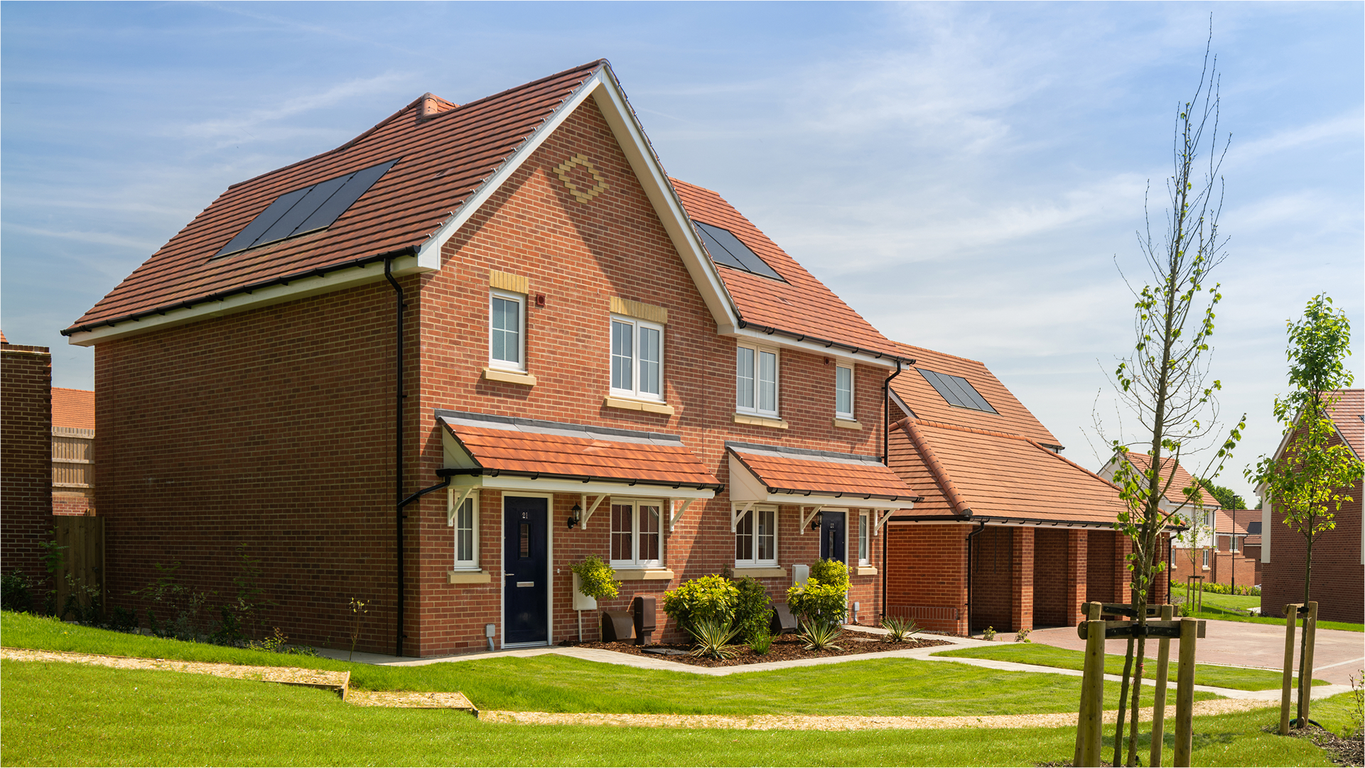 We deliver high quality energy efficient homes and provide buyers with information on the sustainability features of their homes. Alongside high performance insulation, many of our homes include solar PV panels, electric vehicle charging points and an increasing number of sites are installing air source heat pumps. All new houses achieve a minimum EPC B rating to support energy efficient living.