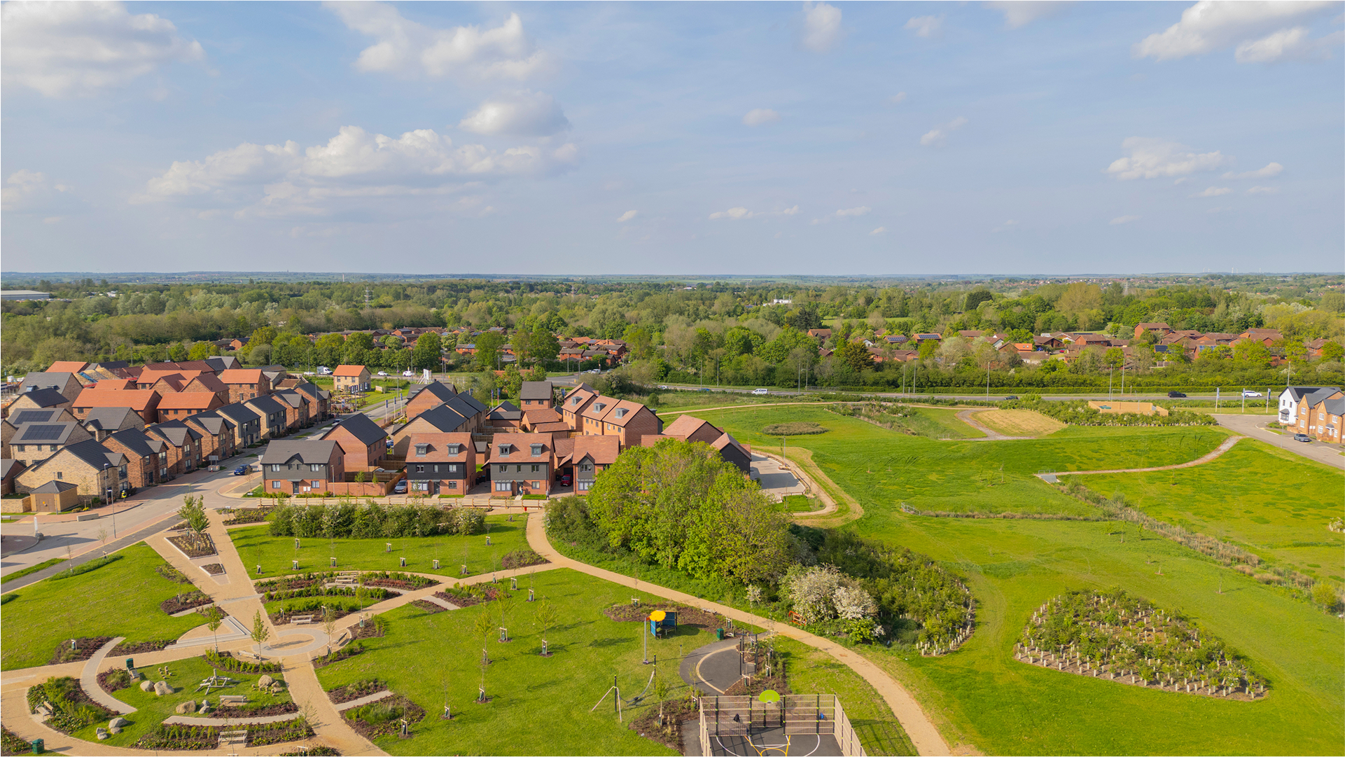 Sustainability is integrated across every stage of design and planning. We incorporate biodiversity net gain, design attractive green spaces to encourage outdoor activity and wellbeing, and plan for sustainable connectivity through walking, cycling and public transport links. Social infrastructure, such as schools, healthcare facilities, play areas and community hubs, is carefully considered to deliver a lasting positive legacy.